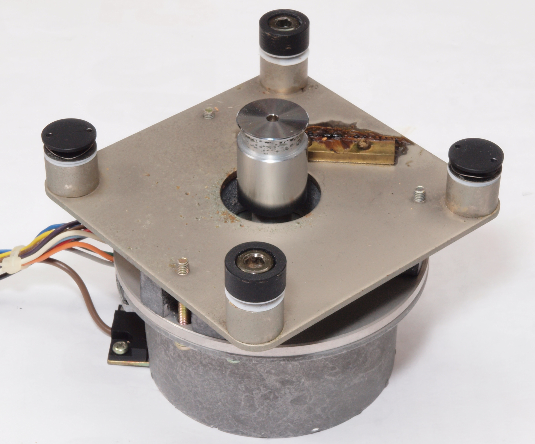 | A19. 点検中 タンテーブルを外し、上から見る。タンテーブル(プラッター)軸。 | ||||||||||||||||||||||||||||||||||||||||||||||||||||